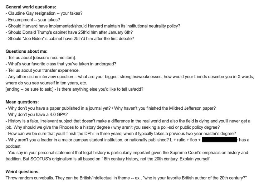 Let’s start from the beginning. Anyone who knows me could tell you that I dream(ed) of speed-running the life and career of soon-to-be-former Secretary of Transportation Pete Buttigieg. I had figured I was in good shape, when I transferred to Harvard with the registrar’s guarantee that I could finish my degree in two years’ time. (I failed to become a bonafide IOP Kid, but let’s face it, Real Haters probably exerts about the same level of influence over the IOP as its student leadership anyway.) I knew that if I wanted to stand any chance of losing several statewide elections, marrying a guy seven years my junior, and having middle-aged women excitedly tweet about my Fox News appearances — the logical next step was to apply for Harvard’s endorsement towards the Rhodes. Wouldn’t that demonstrate fantastic commitment to the bit? I applied in August; I was one of thirty-ish seniors to get the endorsement(!); we were off to the races.